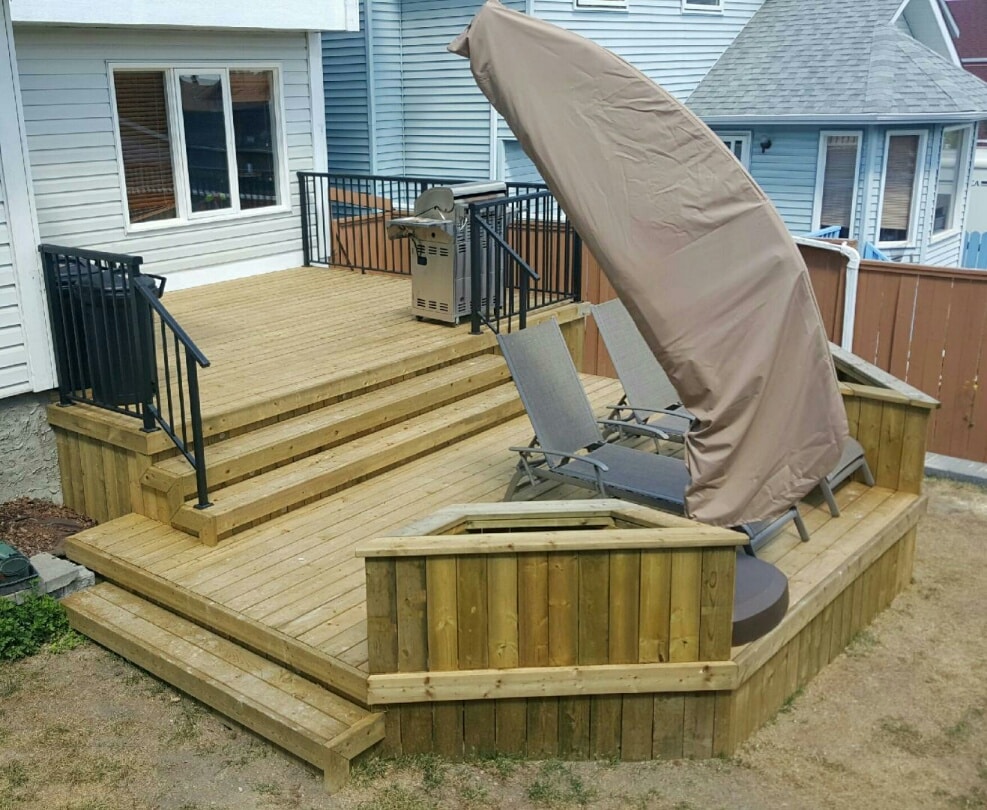 Below are examples of decks designed and built by Pemadale throughout Calgary. Each project highlights different materials, layouts, and features including pressure-treated decks, vinyl membrane decks, and PVC decking systems.